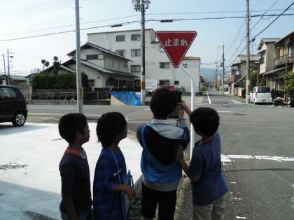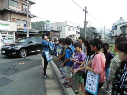 一昨日の2組に続き、今日は3組が、校区内の標識などを探して回りました。