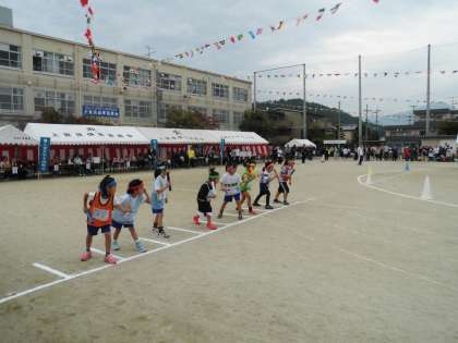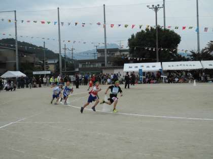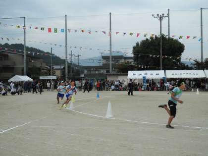 町対抗の児童リレーです。