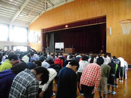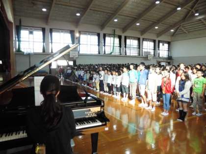 まずはじめに、校歌斉唱。きれいな歌声が体育館に響きます。