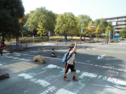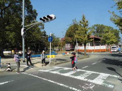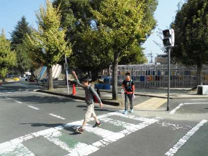 次は、一人ひとりが、横断歩道を渡る学習です。