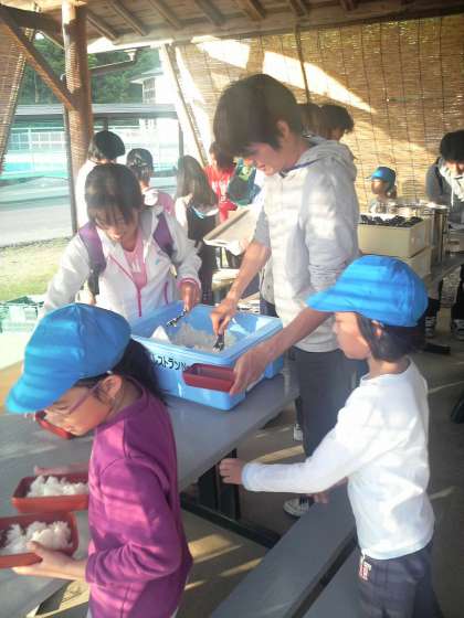 食事の準備中です。食事係,がんばってます。