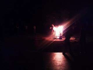 日が暮れ,いよいよキャンプファイヤー開始。その後,一日の振り返りをしました。