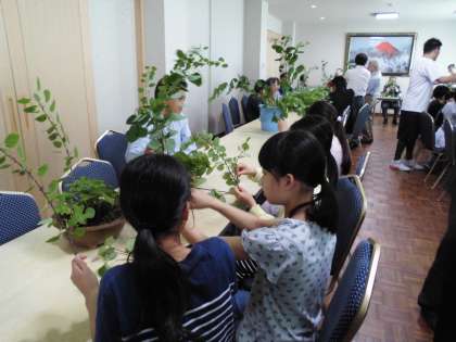 13日(金)の放課後,6年生有志25名が,上賀茂神社で葵飾りを作りに行きました。遠く静岡県や愛知県からもフタバアオイが届けられているということで,地元を代表して受け取りました。また,本校で育てたフタバアオイもお渡ししました。