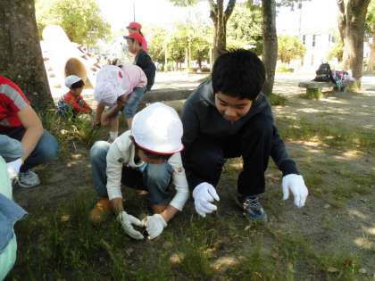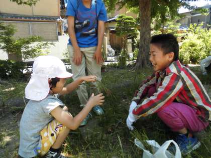 その中で,5年生は保幼小連携の取組として,上賀茂幼稚園・上賀茂保育園の子どもたちとグループを組んで,烏帽子公園をきれいにしました。