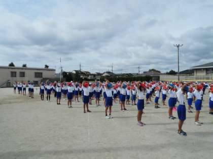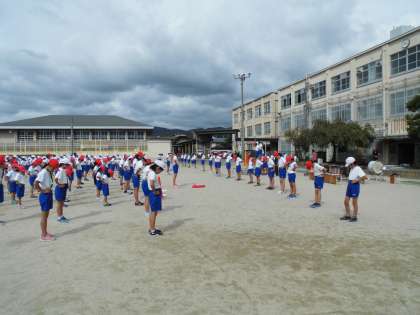全校体操の練習では,体操係の児童の動きををよく見ながらできました。