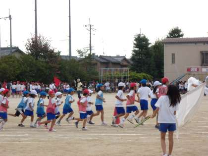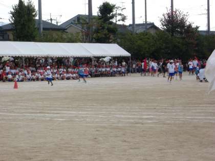 リレーAでは低学年は白組,高学年は青組が勝ちました。