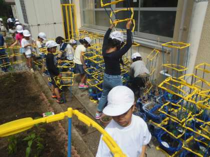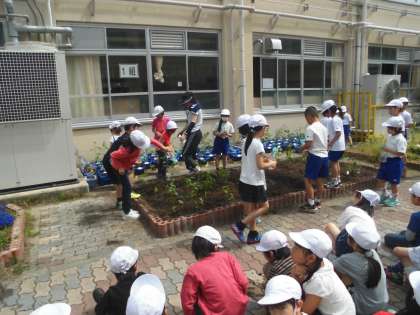 2年生 ミニトマトを植えたよ。