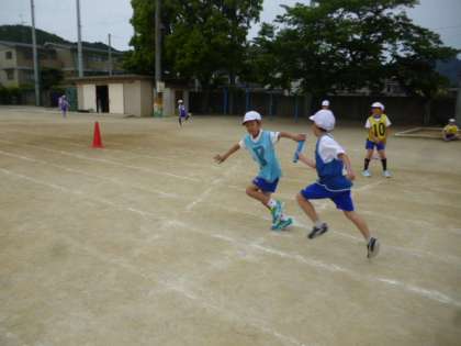 練習の時間で,掛け声をかけたり,スタートするタイミングを合わせたり,顔を前に向けたままパスをもらう練習をしたりしています。果たして記録は伸びているのでしょうか…?
