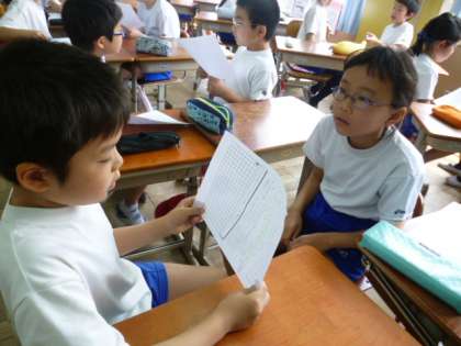 「おたまじゃくしの世話」というお話で,「自分の役目」について考えました。自分の役目と分かっていても,面倒くさい,怠けたいと思ってしまう男の子の気もちを考えることを通して,自分の役目や働くことについて考えました。