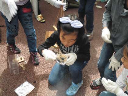 午後の活動 まずは火起こし体験です。所員の方に火起こしの仕方を教えていたき,
