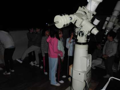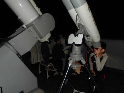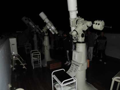 夜は天体観測をしました。少しうす雲が出ていましたが,月や木星を大きな望遠鏡で見ました。