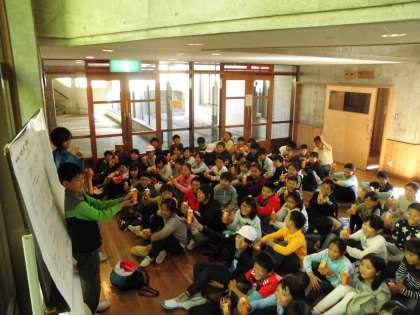 山の家に帰って,お世話になった所員の方,応援に来ていただいた先生方にお礼を言いました。
