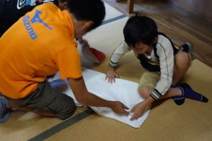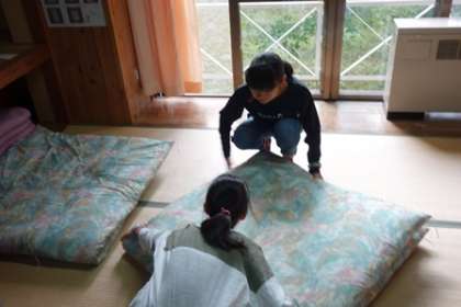 まず布団などをしっかりたたみ,自分の荷物をまとめました。