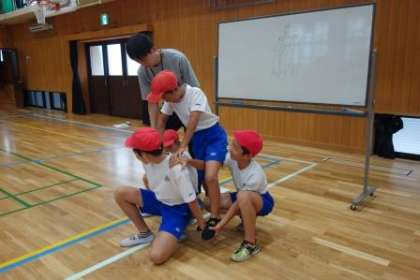 騎馬戦に向けて,騎馬の組み方を練習しました。