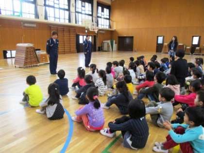 警察の方に来ていただき,交通ルールやマナーについて学びました。