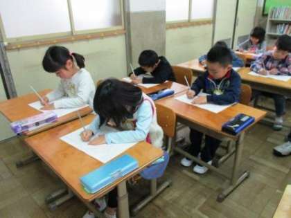 字を書く姿勢やえんぴつの持ち方を学びました。そして,よい姿勢・正しい持ち方を意識して,ていねいに自分の名前を書きました。集中して真剣に取り組む姿は,さすが1年生ですね。
