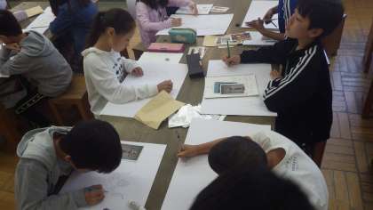 自分の心に残った絵や写真から,イメージをふくらませます。