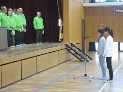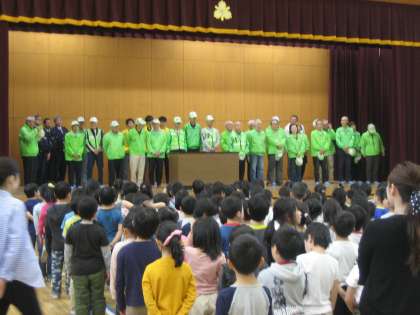 毎日の登下校の安全を見守っていただいている「見守り隊」の方々が来校されました。