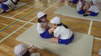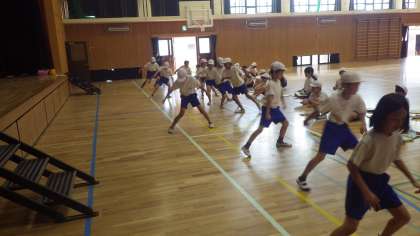反復横跳びと上体起こしを行いました。