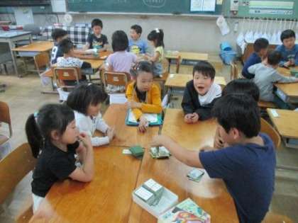 みんな夢中になって遊んでいると,あっという間に終わりの時間。2年生となかよくなって学校探検にスタートです!