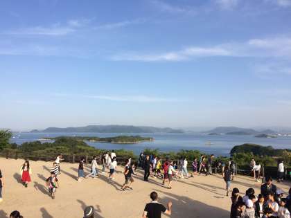 瀬戸内海が一望でき,最高でした。子ども達も大喜びです。クラス写真を撮り,いよいよホテルに向かいます。ホテルまではバスで5分ほどで着くとのことです。子ども達は待ちきれない様子です。