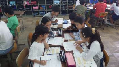 コンビネーションサラダとゆでたまごの作り方を,グループで確認しながら計画を立てていきます。