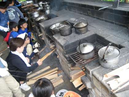 なかなか火がつかないかまどがありましたが,何とかごはんを炊くことができました。