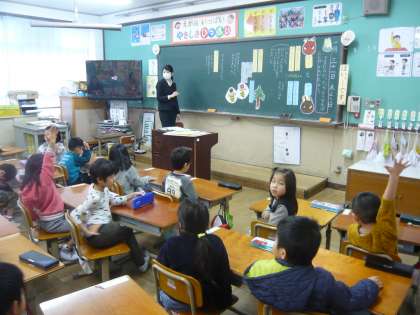 1年生では,道徳「ゆっきとやっち」の学習を通して「友達との交流」について考えることから人権について学び合いました。