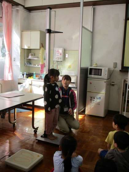小学校に入学して,初めて身長と体重を測りました。これからどれだけ大きくなっていくのか,楽しみにしているようでした。