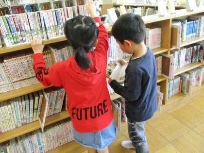 図書室に行き,図書室の使い方やルールについて学習しました。それぞれが読みたい本を探し,楽しそうに読んでいました。