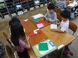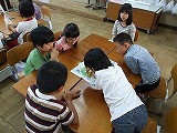 事前に作った,特別教室紹介カードを使って,1年生にやさしく紹介している姿がほほえましかったです。