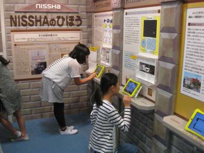 展示してある機械で体験をしたり,