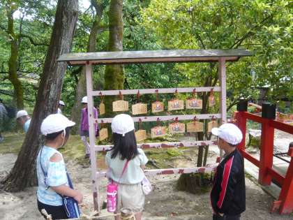 貴船神社では,何の神様を祀っている神社であるかを調べたり,おまいりをしたりしました。
