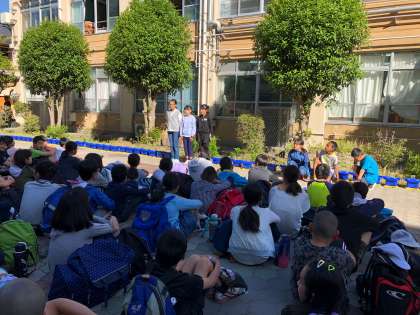 出発式を終え,7時45分に岡山・四国に向けてみんな元気に出発しました。