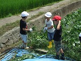 春に植えたサツマイモのお手入れ(草引き)をしました。