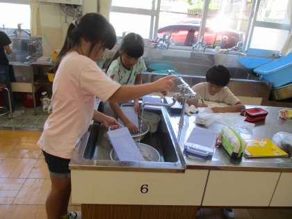 社会科「昔をつたえるもの」の学習で,洗濯板を体験しました。
