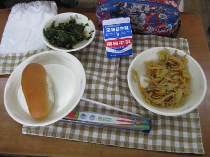 今日の給食は「ソース焼きそば」。
