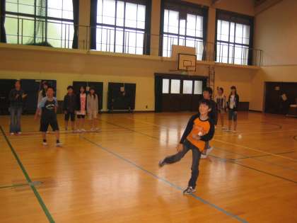 1時間目は4組と一緒に交流ドッジボールやイラストリレーをしました。