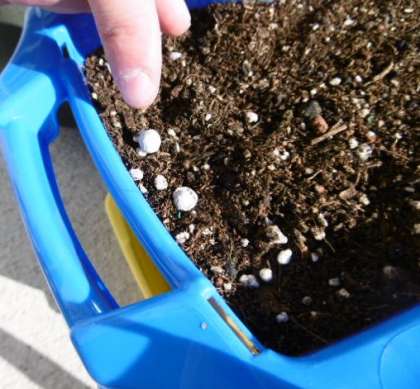肥料をまく位置は,種の真上に来ないように植木鉢の淵にまくようにします。