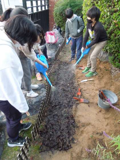最初は園芸委員だけでしたが,ちがう委員会の子も手伝ってくれて,