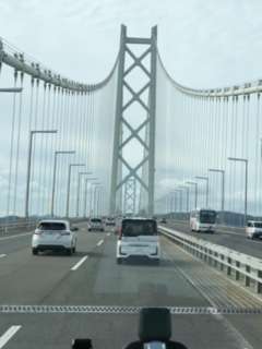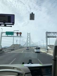 明石海峡大橋を渡っています。もうすぐ淡路SAでトイレ休憩です。