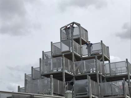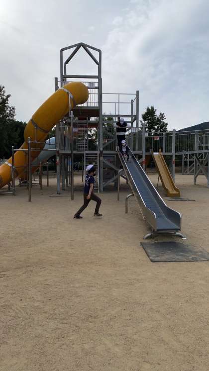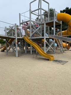 アスレチックでは、階段を上がったり、下がったり、滑り台で滑ったり、たくさん体を動かしました。