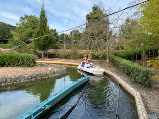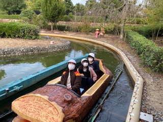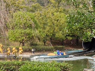 100匹のたぬきが見る中、徳島の自然風景を感じながら、小舟に乗って、川をくだりました。笑顔がいっぱいでした。