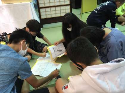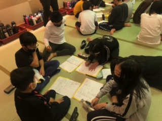 お風呂のあとは、反省会でした。一日を振り返り、明日のめあてを確認しました。最高の姿で学校へ戻り、素晴らしい思い出にするために、何が必要なのかを交流しました。たくさんあった反省点は、今日への改善点です。昨日より今日。輝く1日をつくるのは1人1人の意識です。今日の姿が楽しみです。