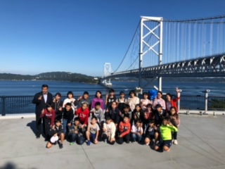 渦の道を歩いたあとは、大鳴門橋が下から見える千畳敷で、最後のクラス写真を撮りました。天気も良く、橋もよく見え、子どもたちの表情がより一層明るく見えました。