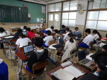 国語科では「枕草子」の冒頭部分を読んでいます。古文の響きを楽しみながら音読することができました。