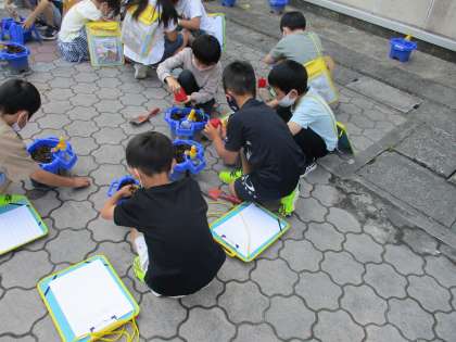 「匂いだらもうトマトのにおいがする!」ととてもうれしそうに観察しました。