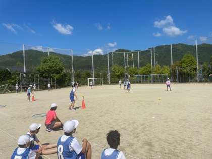 運動場ではベースボールをしています。できるだけ遠くに打つ,相手がいないところに打つことを意識して頑張っていました。守備では,キャッチをしたあとどこにボールを投げるのかが難しかったようですが,みんなで楽しむことができました。