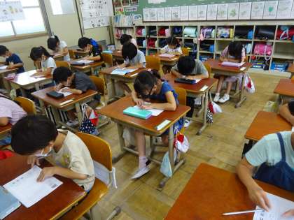 書写では,お手本を見ながら,ひらがなを丁寧に書きました。