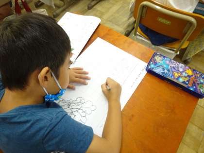「ます目の中のかくところ」に気を付けながら,書く練習をしました。